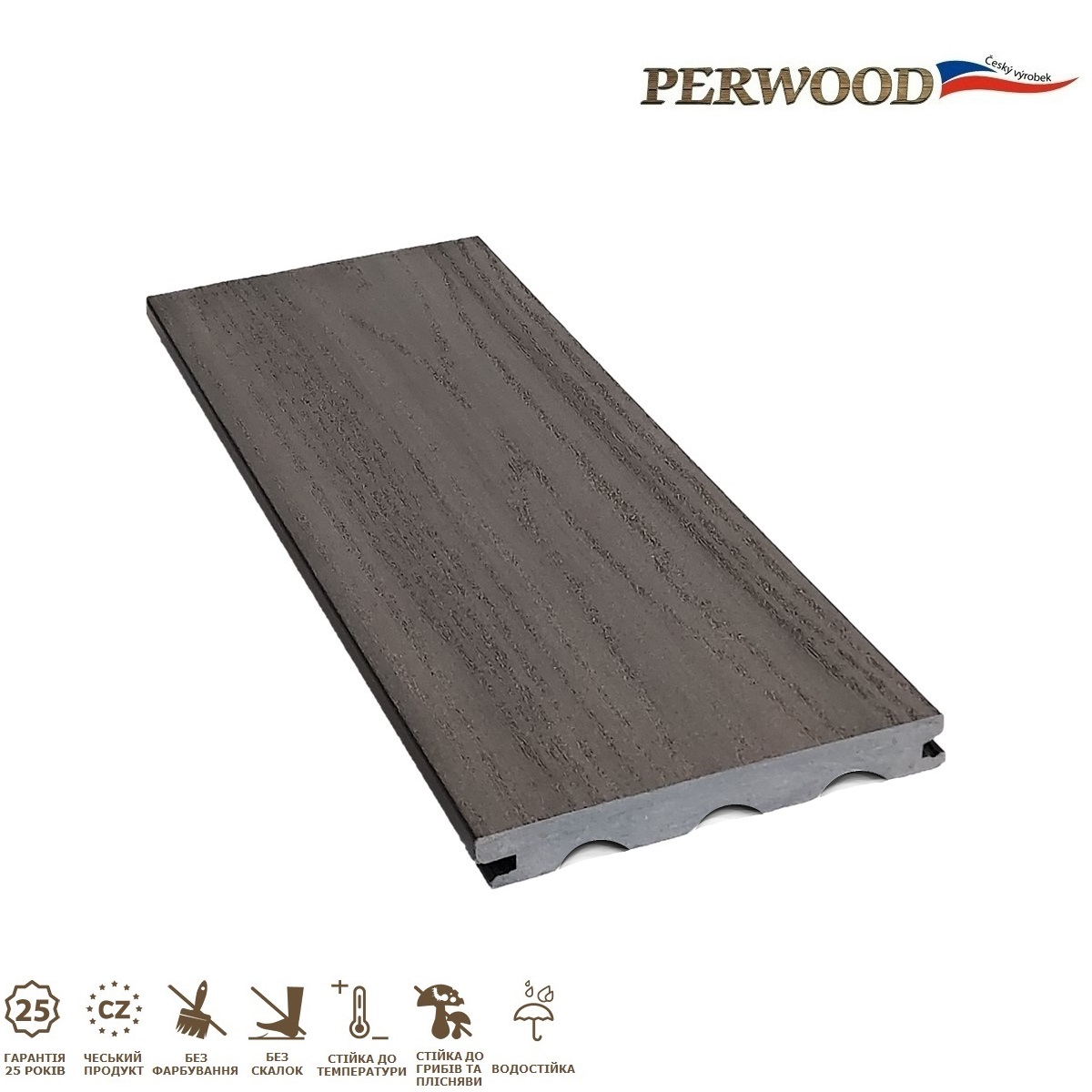 Терасна дошка PERWOOD COUNTRY MASSIVE 162х21х4000 з повним профілем від чеського виробника виготовлена з високоякісного матеріалу ДПК (50% деревини твердих порід і 50% первинного ПВХ) з високою міцністю і тривалим терміном служби. Стандартна довжина дошки становить 4000 мм, проте вона також може поставлятися з урахуванням необхідної для Вас довжини без доплати.